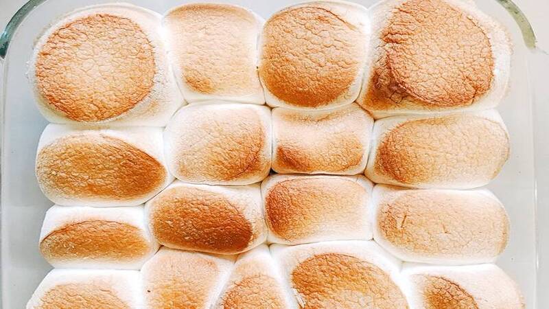 Ngoài là thức ăn kèm, kẹo Marshmallow còn có một cách thưởng thức khác là nướng lên. Lớp ngoài của kẹo sẽ chuyển từ màu vốn có sang màu vàng ngả nâu.